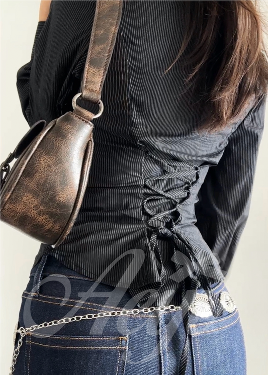 [INTEREST CHECK] Burgandy Lace Up Blouse